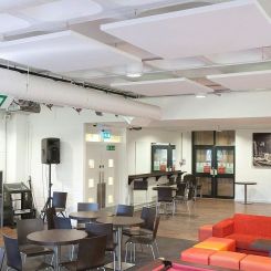 Plafondeilanden zijn innovatieve, akoestische elementen die helpen om de galm in de ruimte te verminderen en de spraakverstaanbaarheid te verhogen. Eilanden zijn leverbaar in een breed gamma van kleuren en vormen, waardoor ze geschikt zijn voor bijna iedere omgeving. Wij kiezen voor de plafondeilanden van