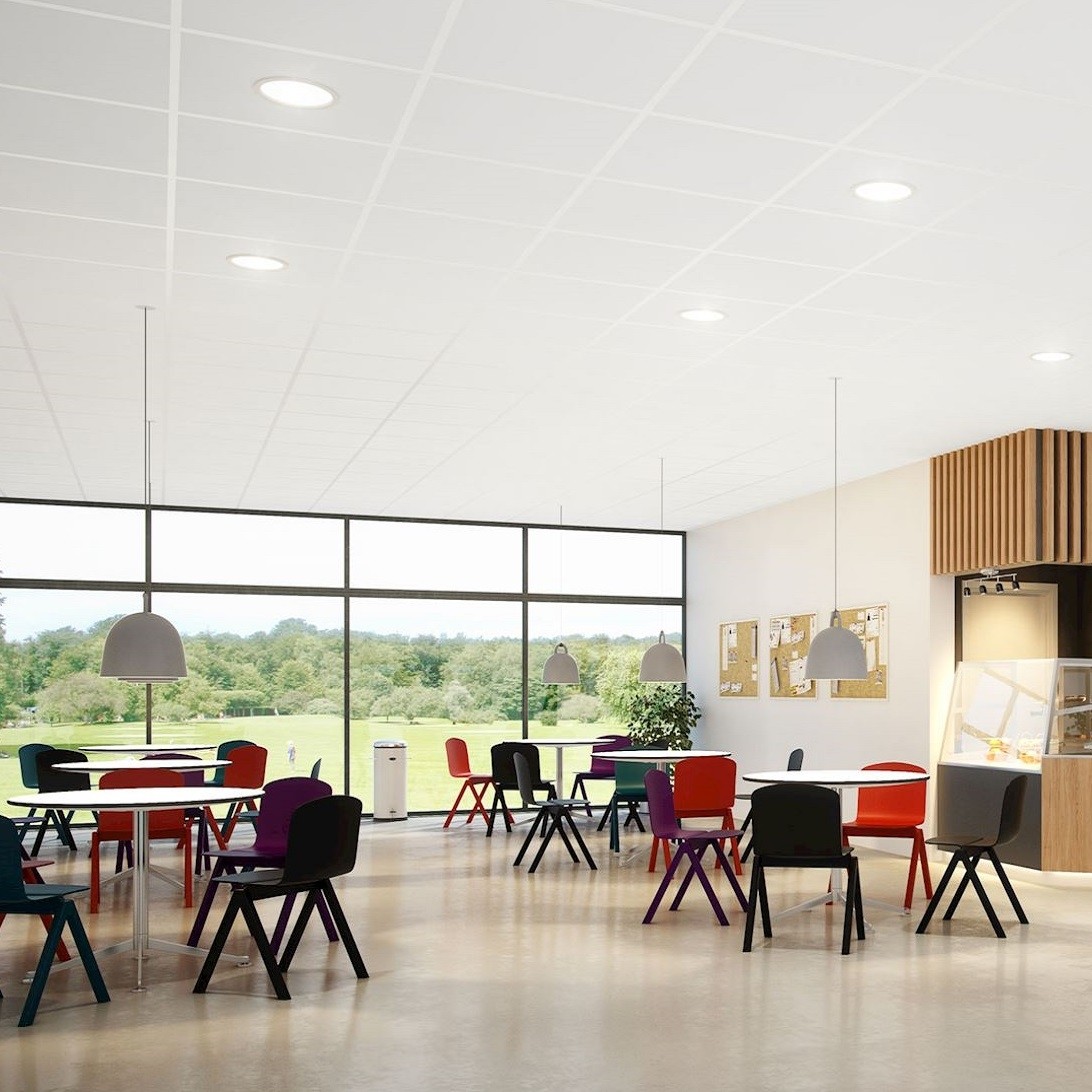 - Hoge geluidsabsorptie gekoppeld aan hoge lichtreflectie voor een fijne werkomgeving