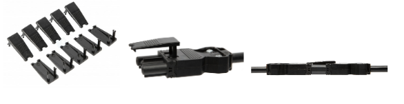 5-10 Borgclips, deze borgen de verbinding tussen male en female stekkers, voorkomt lostrekken. Ons artikel 3727.