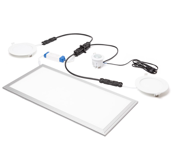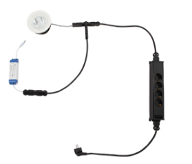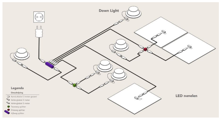 6-5 LED downlighter en LED voeding doorgekoppeld met splitter.