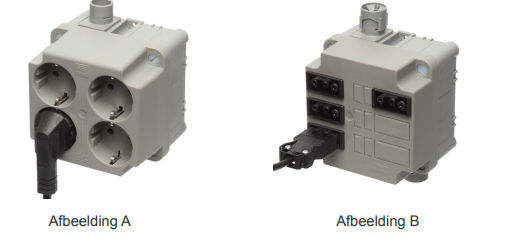 aangesloten op een centraaldoos (zie afbeelding B) voorzien van Wieland® chassisdelen (maximaal 6 stuks).