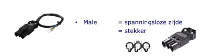 5-5 Male apparaat aansluitsnoer, deze stekker met snoer komt op het stroom ontvangende apparaat.